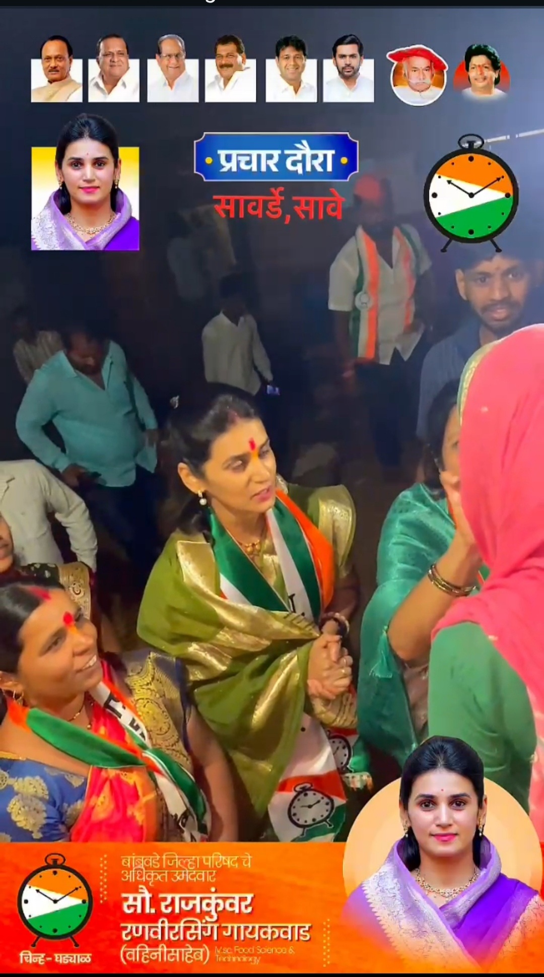 अशाच अनेक विकासकामांना उर्जितावस्था देण्यासाठी घड्याळ चीन्हासामोरील बटन दाबून मला तसेच अभयसिंह चौगुले यांना निवडून द्यावे. त्याचबरोबर पिशवी पंचायत समिती मधील अधिकृत उनेद्वर सौ लक्ष्मी बाबुराव पाटील यांचे चिन्ह सुद्धा घड्याळ आहे. त्यांच्या घड्याळ चीन्हासामोरील बटन दाबून त्यांना देखील भरघोस मतांनी निवडून द्यावे. तसेच आम्हाला विकास करण्याची संधी द्यावी. असेही आवाहन सौ राजकुँवर गायकवाड यांनी मतदारांना केले आहे.