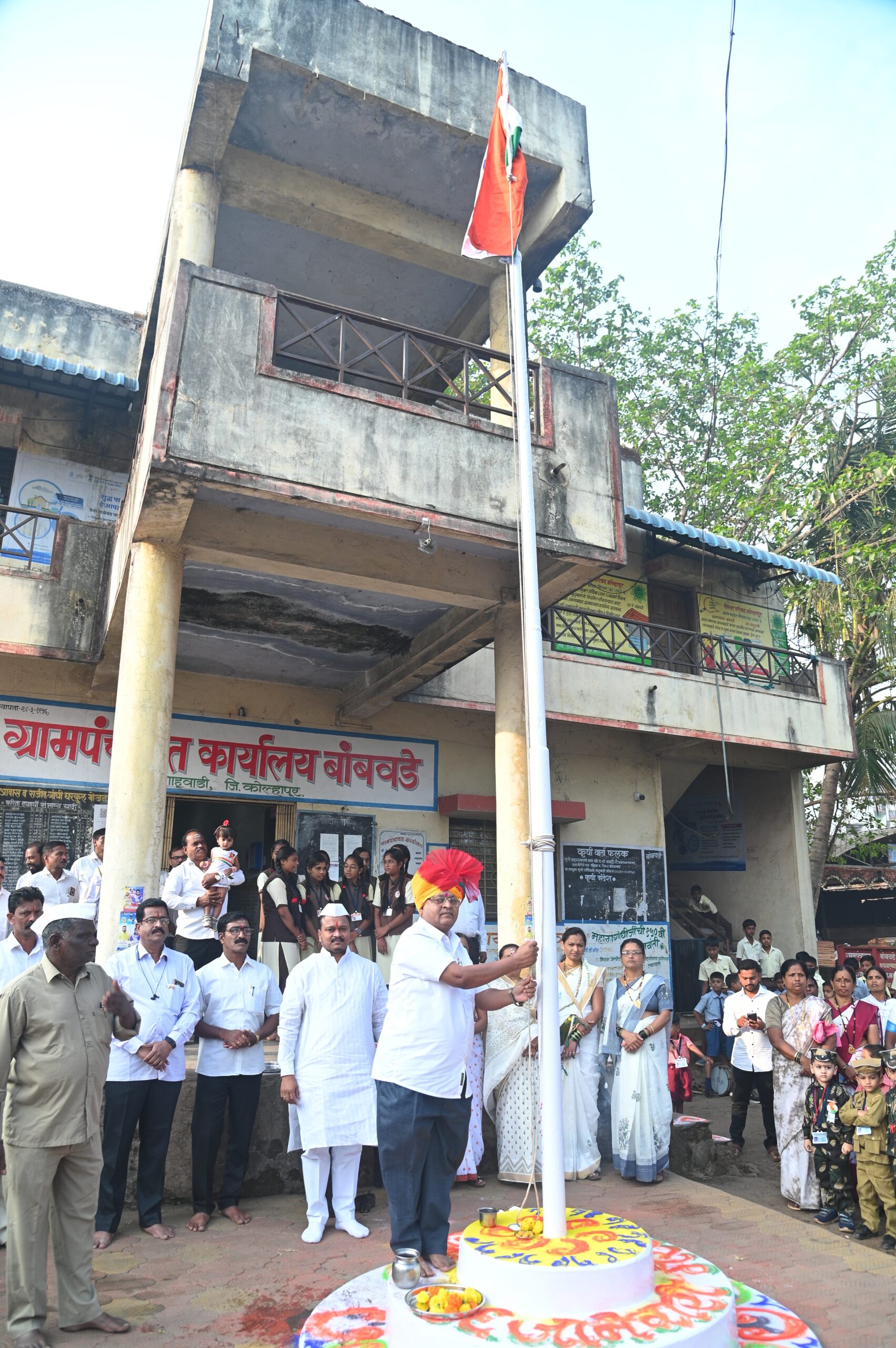 बांबवडे : बांबवडे तालुका शाहुवाडी येथील ध्वजारोहण करण्याचा मान येथील ज्येष्ठ पत्रकार व साप्ताहिक शाहुवाडी टाईम्स व एसपीएस न्यूज चे संपादक श्री मुकुंद पवार यांना देण्यात आला. त्यांच्या हस्ते ग्रामपंचायत बांबवडे चे ध्वजारोहण करण्यात आले. यासाठी मुकुंद पवार यांच्याकडून ग्रामपंचायत चे सरपंच श्री भगतसिंग चौगुले, उपसरपंच सुरेश नारकर, दीपक निकम, स्वप्नील घोडे-पाटील यांच्यासह सर्व सदस्य,, व महिला सदस्य भगिनी, दीपक पाटील अमर निकम, विजय कांबळे यांच्यासह सर्व सहकाऱ्यांचे आभार मानण्यात आले.